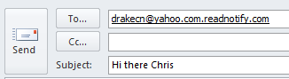 Your recipient will not see you added the .readnotify.com